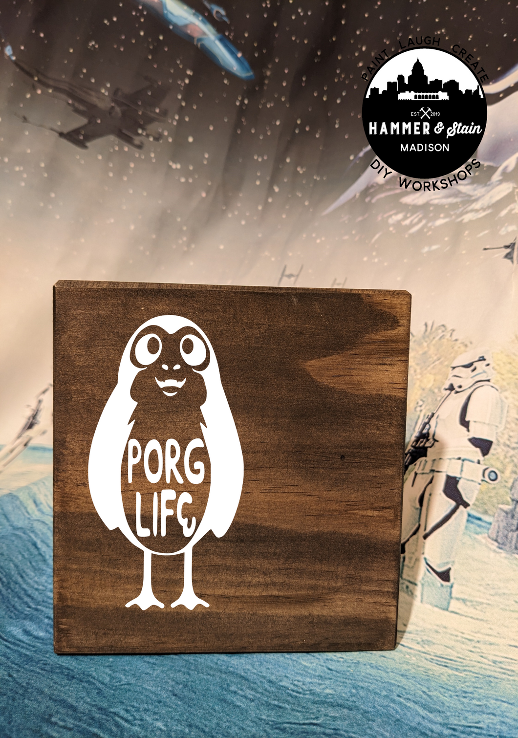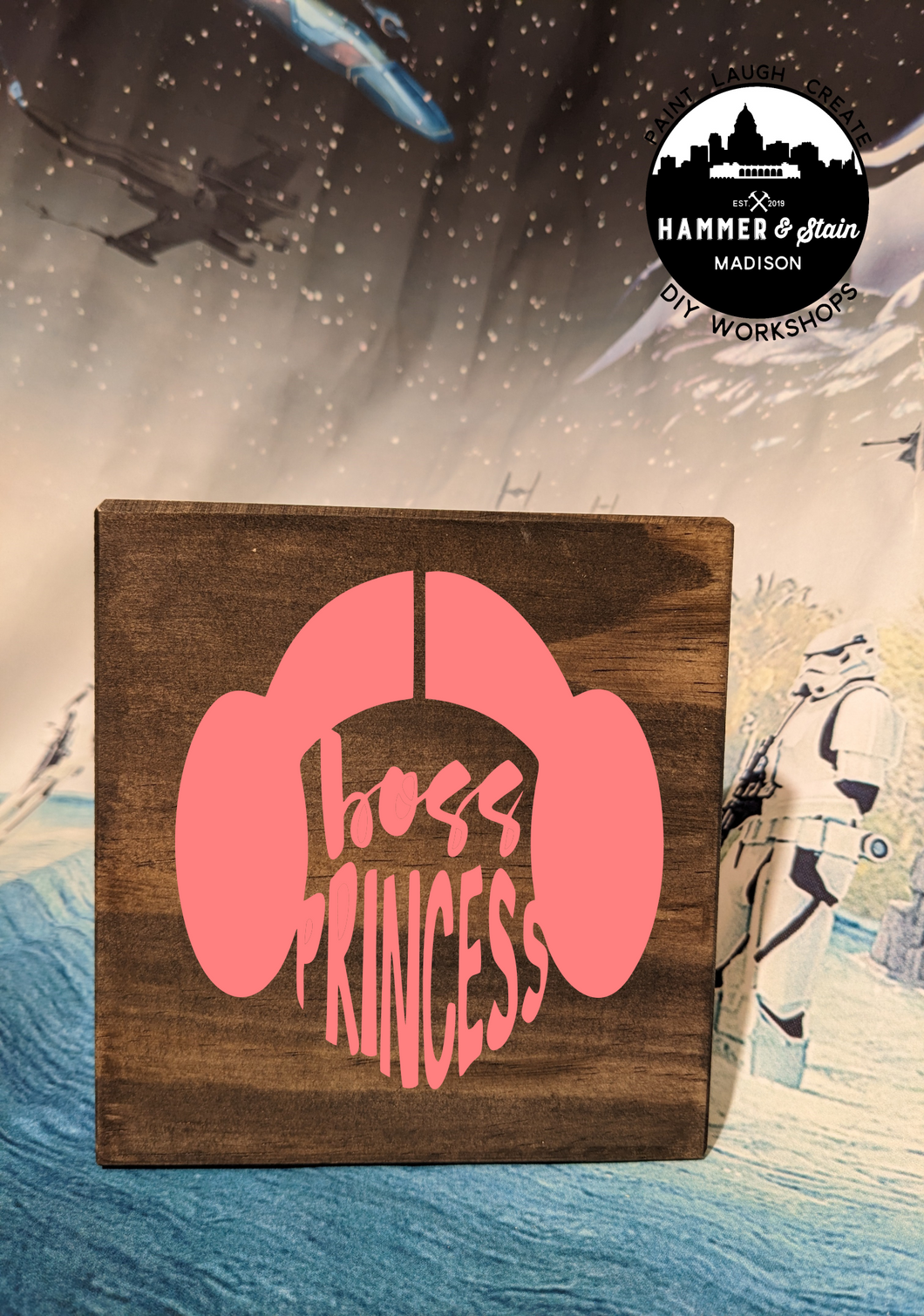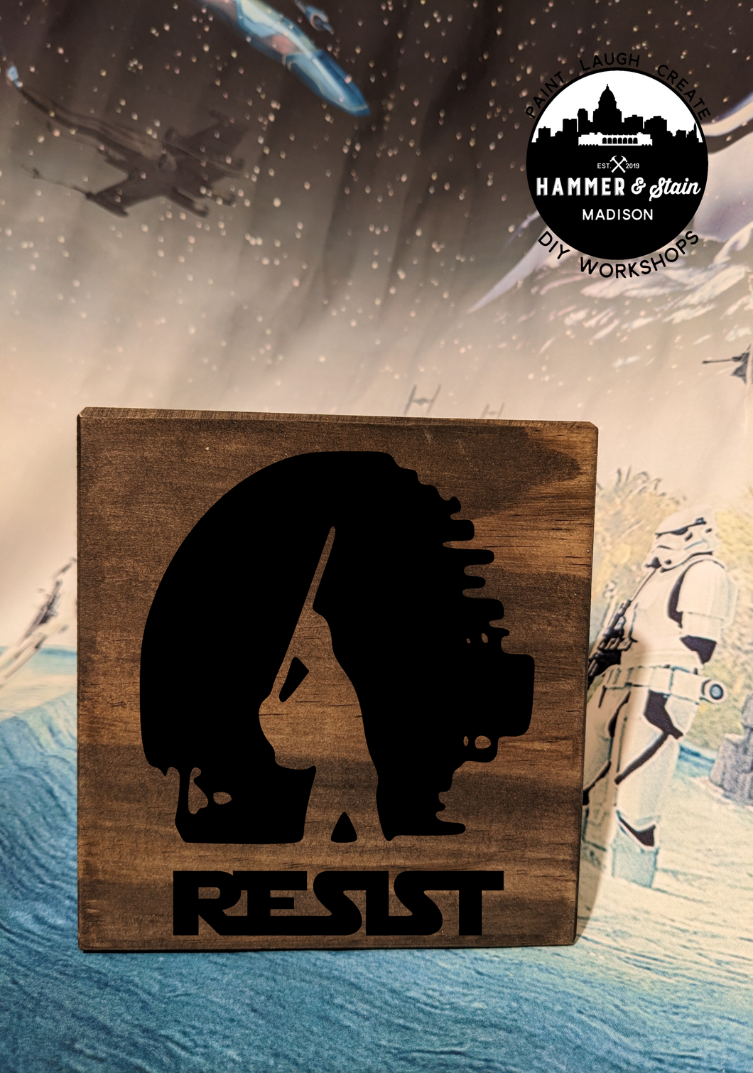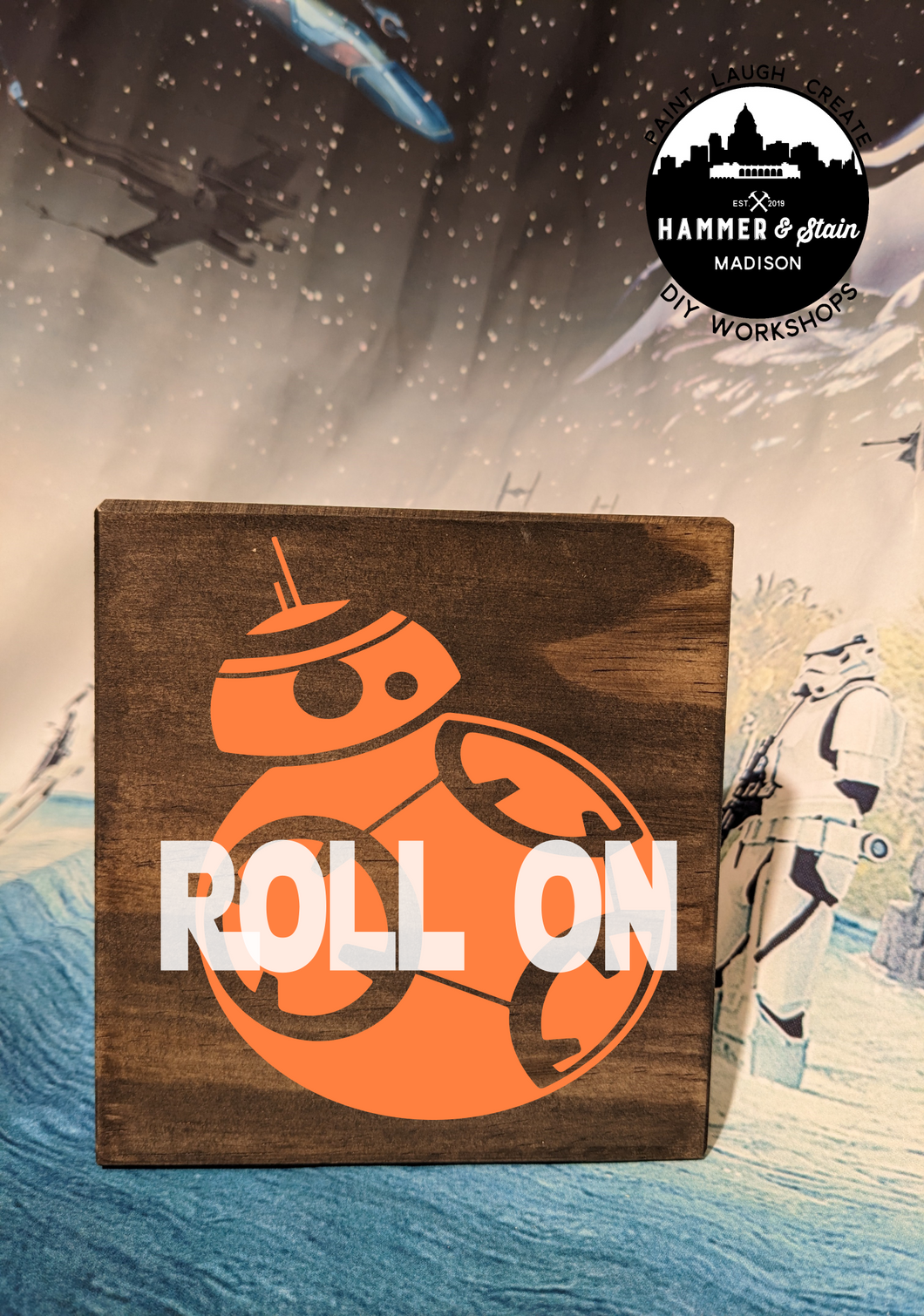 Where's all my Star Wars Fans? The Force is pulling you into Hammer & Stain to create a masterpiece. You will customize your project in studio with your choice of stains and paint colors. This registration allows for one adult to make one Sign. The class will be instructor lead.